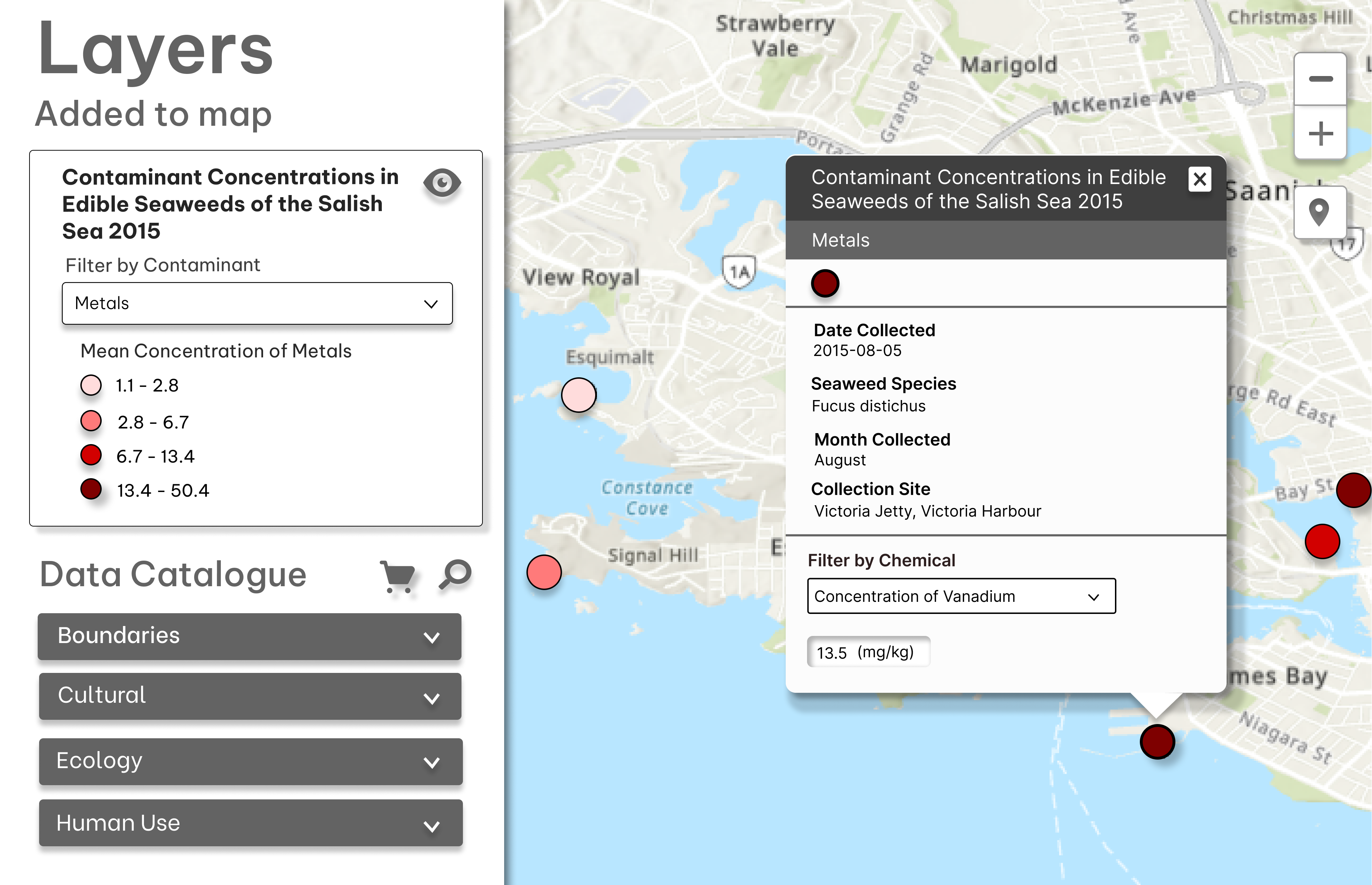 Completed during a co-op term at Fisheries and Oceans Canada. Focused on spatializing contaminant data and designing interactive map elements for the Salish Sea Initiative. Tools Figma ArcGIS R Read more 02 Apr 2023 - less than 1 minute read