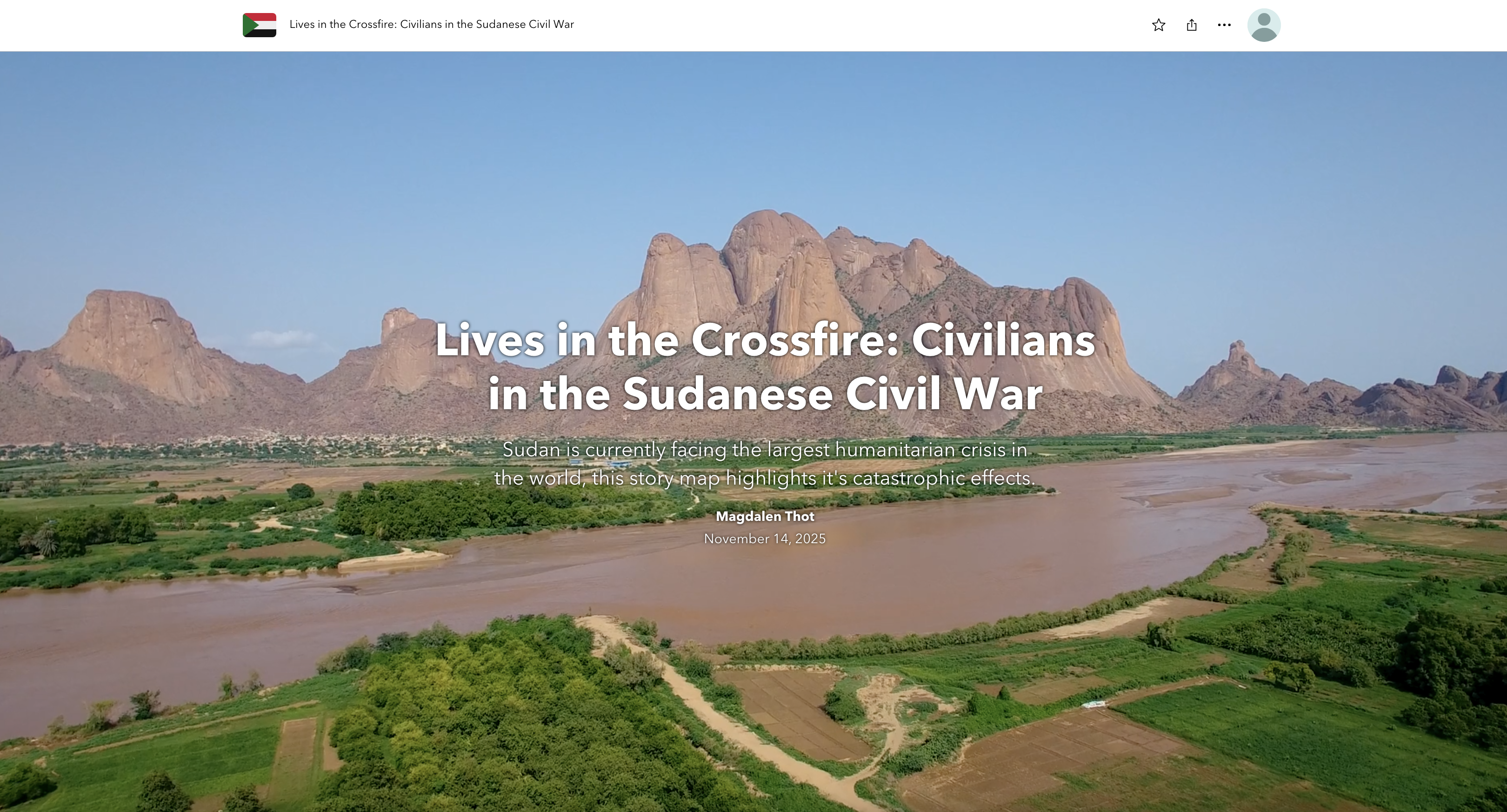 Created an ArcGIS StoryMap examining the catastrophic impacts of the Sudanese Civil War on civilians. The project highlights displacement, violence, and humanitarian access challenges in what is currently the largest humanitarian crisis in the world.